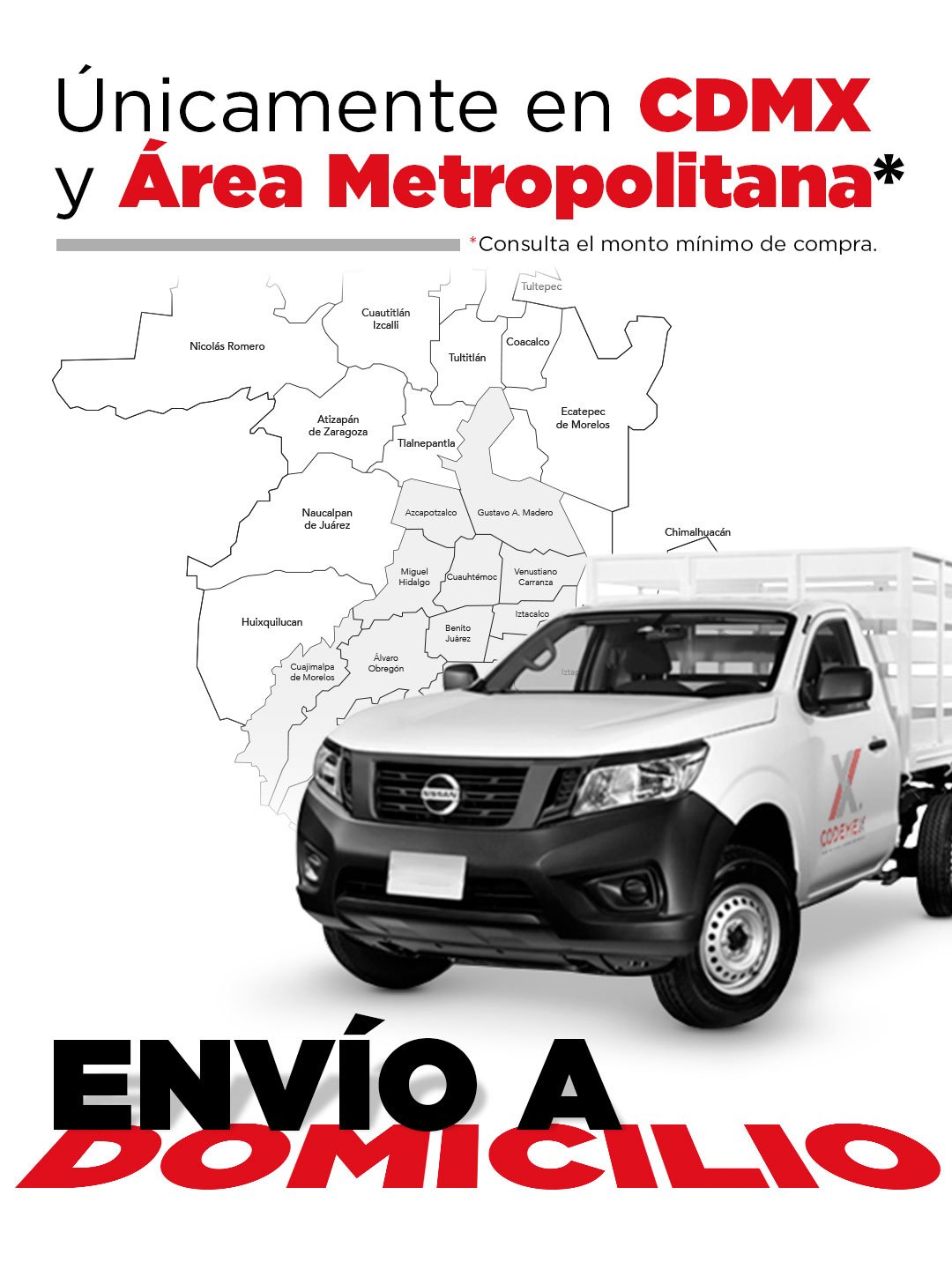 Al momento de cotizar te indicaremos si tu compra cubre el monto mínimo para Envío a Domicilio en CDMX y Área Metropolitana. También puedes recoger directamente en nuestra Tienda ubicada en Naucalpan, Estado de México.